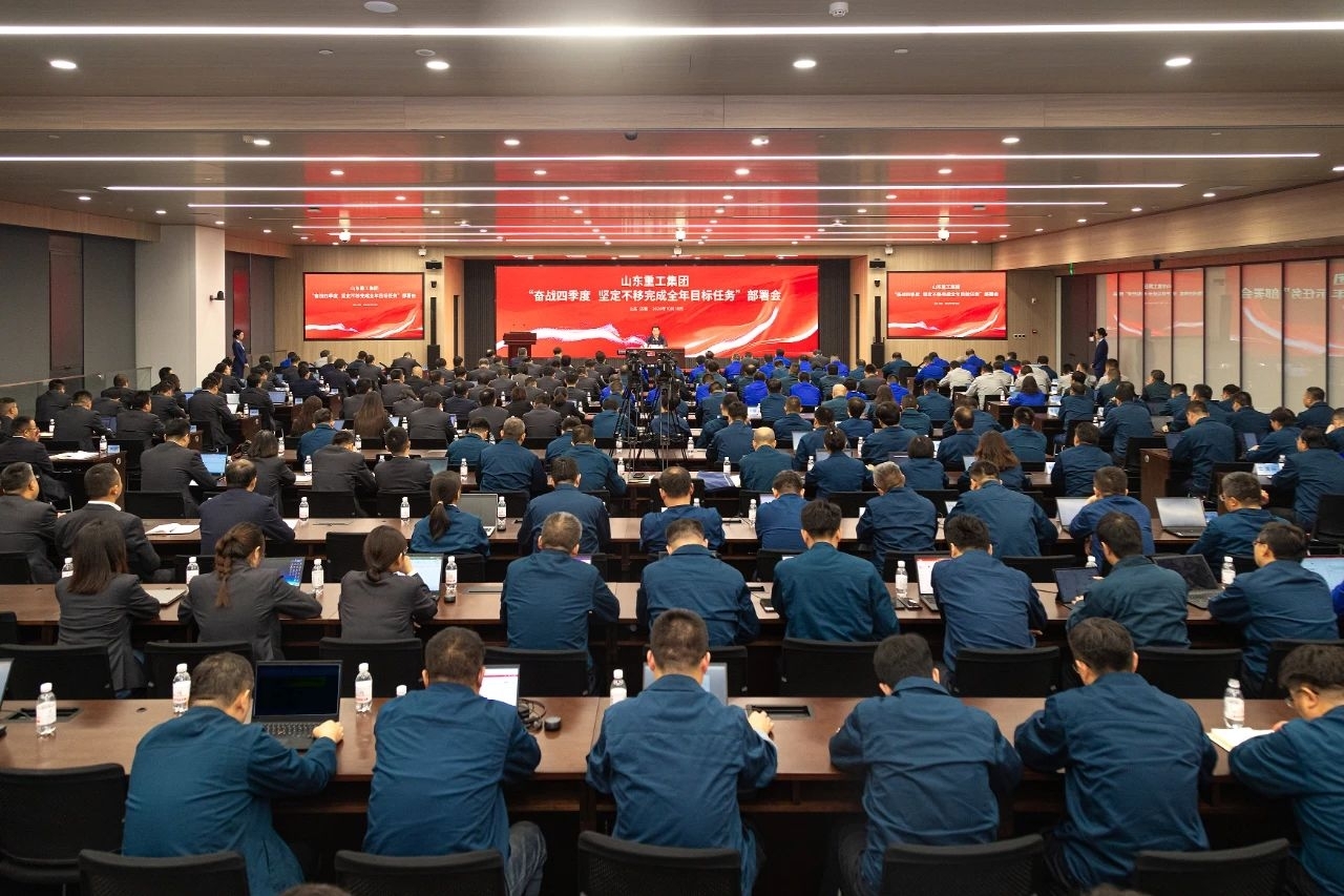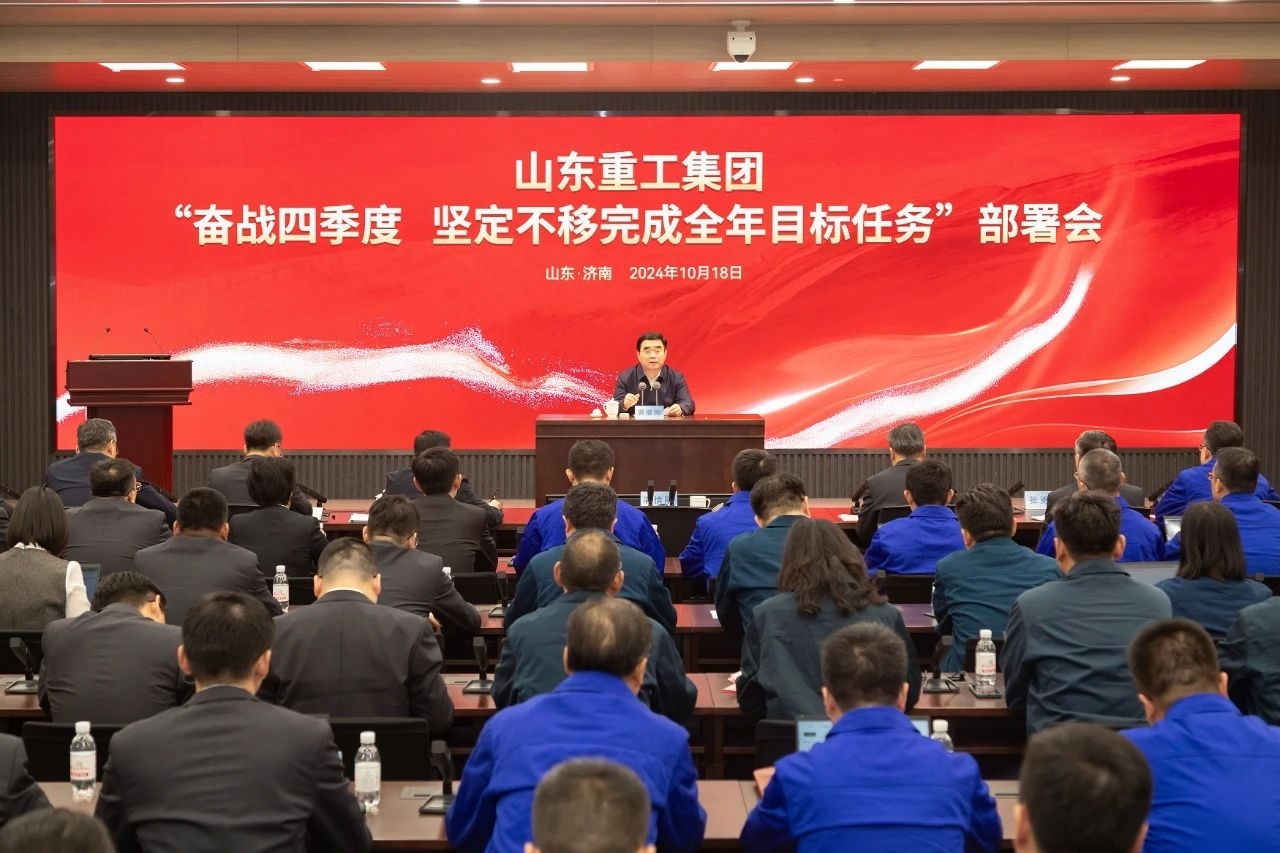 On October 18th, Shandong Heavy Industry Group held a deployment meeting on 'Striving to Meet Annual Targets in Q4.' The meeting thoroughly studied and implemented the spirit of the Third Plenary Session of the 20th CPC Central Committee and the meeting of the Political Bureau of the CPC Central Committee on September 26th. It also fully implemented the decisions and deployments of the provincial Party committee and government, as well as the requirements of the third quarter economic operation analysis meeting of the provincial State-owned Assets Supervision and Administration Commission. The meeting summarized the group's economic operation in the first three quarters, analyzed the current internal and external situation, developed the work plans for the fourth quarter, and drive all work efforts to new levels of intensity, breakthroughs, and efficiency, fighting in the fourth quarter to unswervingly achieve all the annual targets. Man Shengang, Party Secretary and Chairman, attended the meeting and delivered a speech. Wang Zhijian, Deputy Party Secretary and President, reported on the Group's operation in the first three quarters and the targets for the fourth quarter, and signed performance target agreements with the heads of subsidiaries. Ye Jianjun, Deputy Party Secretary and Director, presided over the meeting.